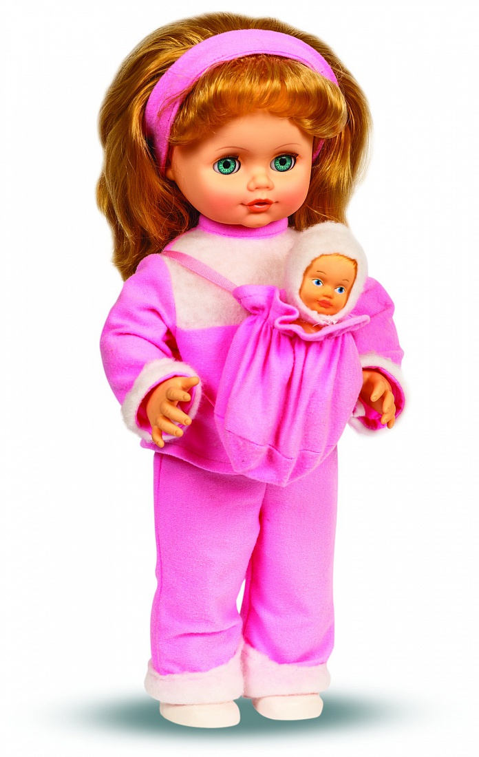 У этой очаровательной мамы такой замечательный малыш. В комплект одежды куклы Инна-мама входят: брюки, кофточка, ободок для волос.