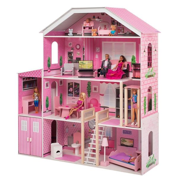 - Игрушечный дом для кукол "Поместье Розабелла" частично открытый (задняя стенка глухая, все игровые зоны с лицевой стороны полностью доступны для игры)