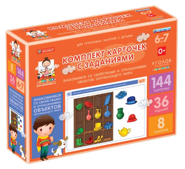 Дидактический набор разработан для коллективных уроков в дошкольном учреждении. В него включены карточки с вариативными заданиями, ориентированными на мотивирование познавательных навыков и знакомство с предметами окружающего мира.