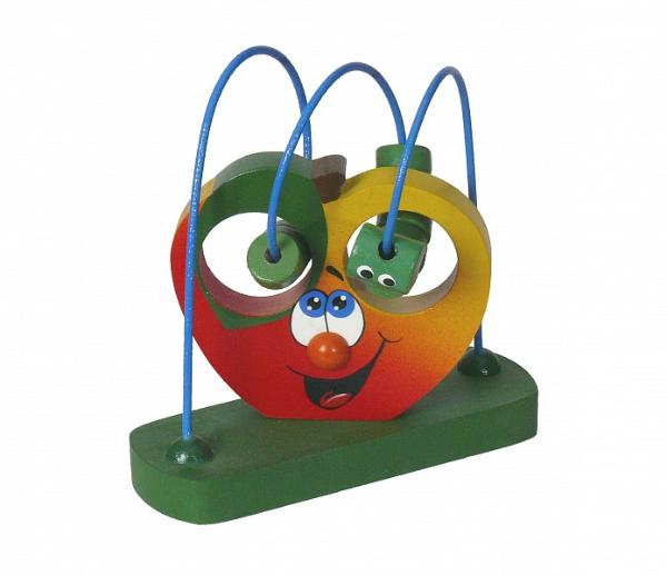 Такая игрушка обязательно понравится деткам. Нужно "переводить" смешную гусеницу, состоящую из 10 бусинок через отверстия в яблоке с одного конца проволоки на другой, каждый раз петляя по изгибам лабиринта.