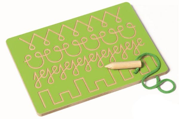 К плитке с узорами прилагается удобный деревянный карандашик на веревочке.